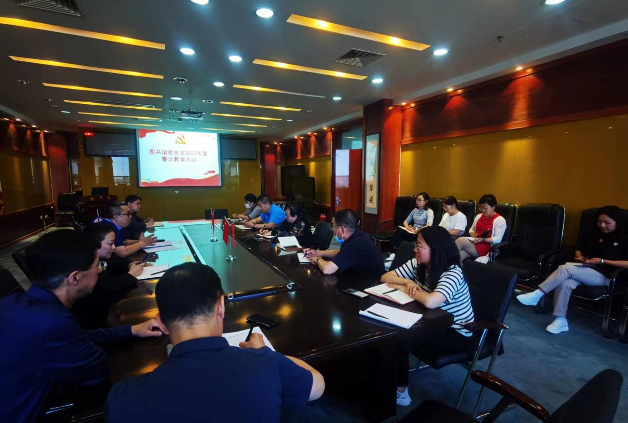 5月30日下午,图书馆党总支2022年度警示教育大会在图书馆三楼会议室召开。参加会议的有馆领导、党总支委员、各部室正副主任、分工会主席、各支部书记和党务秘书。图书馆党总支书记、馆长王锋同志主持会议。