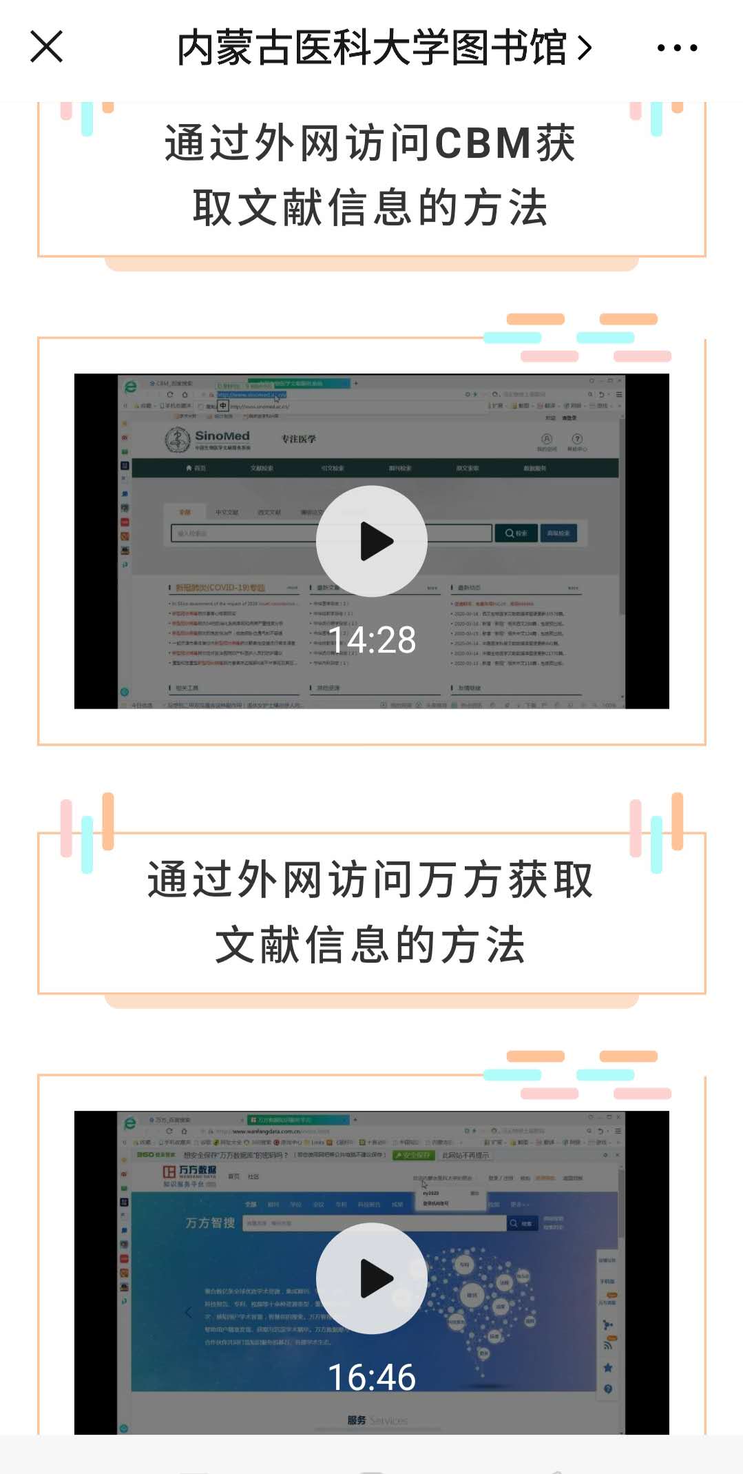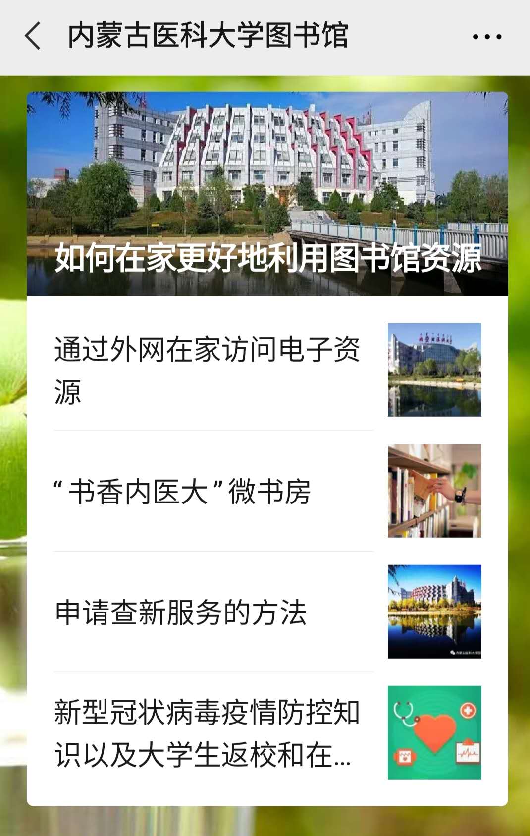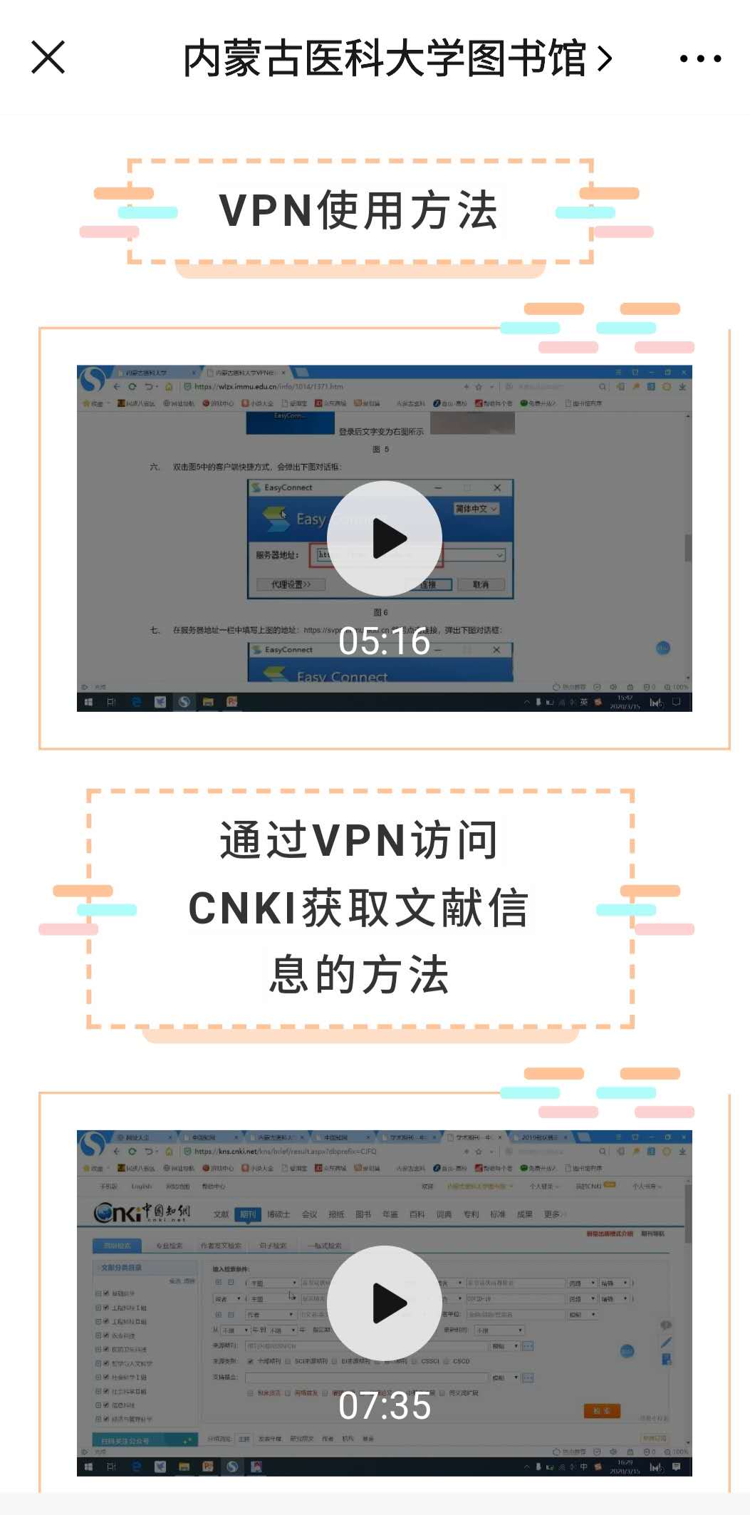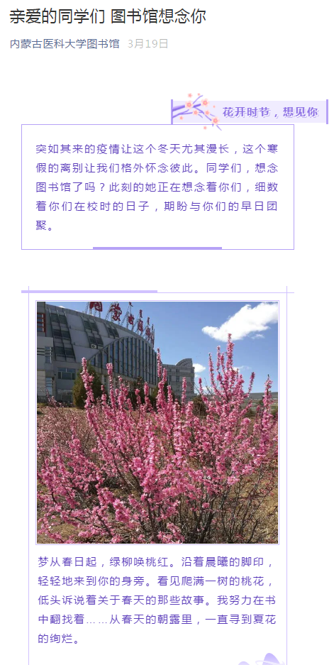 系列小视频内容有VPN的使用方法;通过VPN访问CBM及CNKI数据库使用方法;通过外网访问CBM、万方、维普数据库的方法;微书房、听书使用方法;申请查新服务的方法;新型冠状病毒疫情防控知识以及返校途中和在图书馆学习中的注意事项等。通过微信公众号、微信群、QQ群、网络课程等新媒体将系列小视频进行推送,图书馆馆员与读者进行有效互动,引导大学生在家利用图书馆文献资源来提高自主学习能力,保证学习效果。指导学生看书、听书,增加学生读书量,满足了毕业生论文查新需求,保证学生对疫情防控知识的进一步了解和学习生活中自我防范能力的提升。此外,宣讲团推出了图文并茂的美篇——《亲爱的同学们 图书馆想念你》,同时积极转发优秀网络文章,引导大学生安排好疫情期间的学习和生活,保证身心健康。