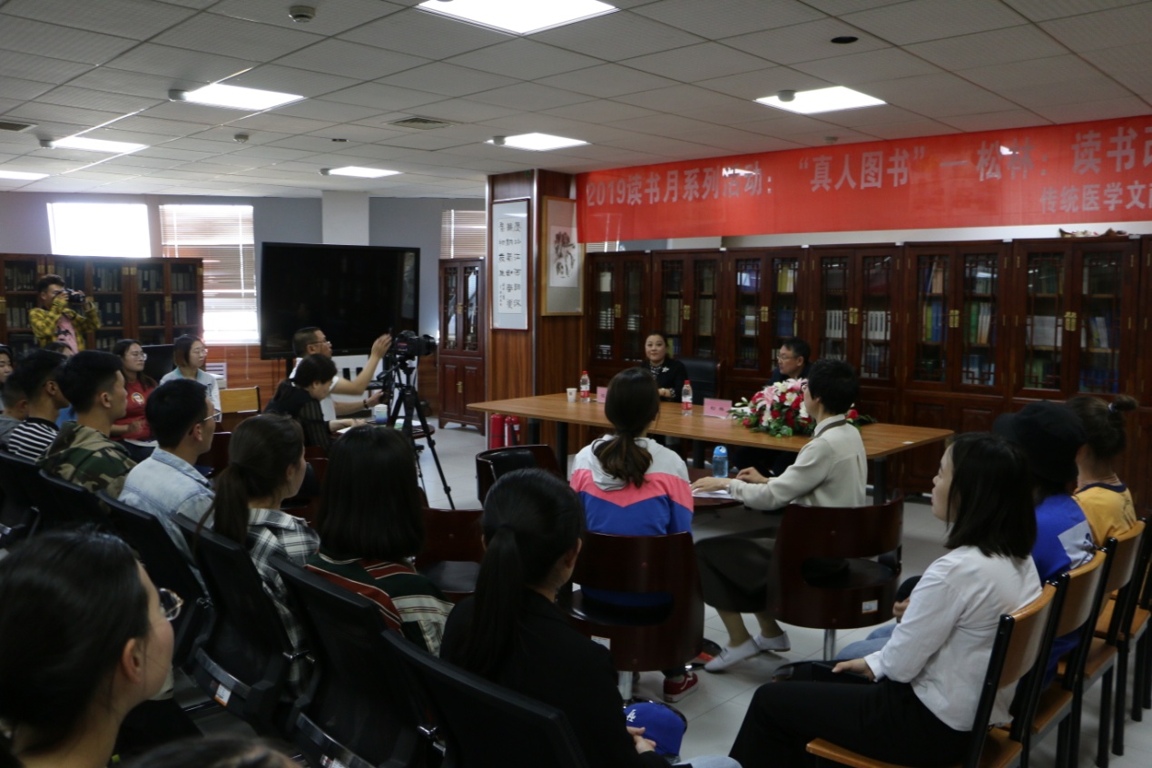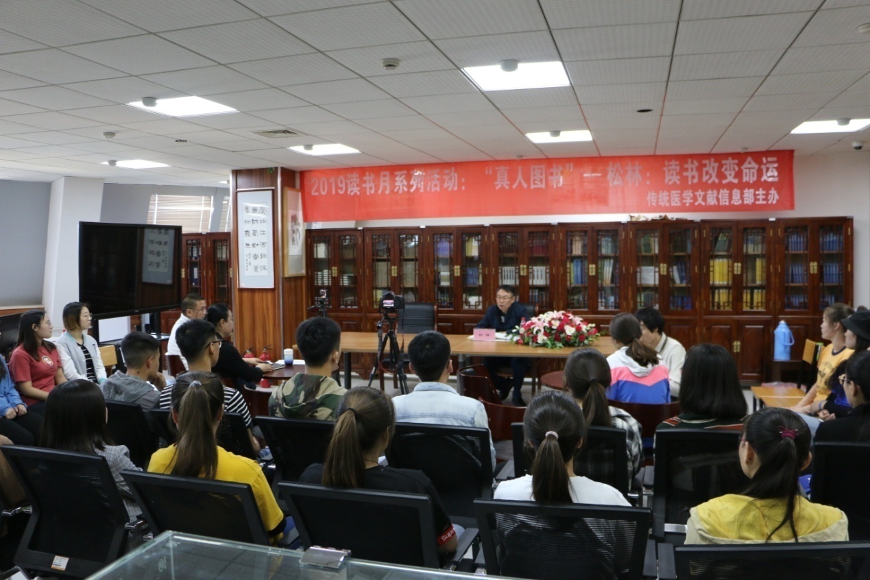 图书馆传统医学文献信息部于5月21日下午,在五楼中医古籍阅览室举办主题为:“聆听真人故事,感悟精彩人生”的《真人图书--松林:读书改变命运》——图书馆读书月系列活动。活动特邀蒙医药学院松林副院长参加,图书馆程鸿副馆长、传统医学文献信息部全体教师和学生代表共计50余人参加此次活动。活动由传统医学文献信息部秀梅老师主持,浩必斯嘎拉图主任介绍了松林副院长学术发展经历。