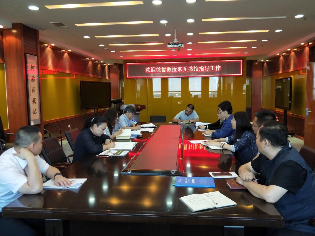 徐智教授首先与图书馆馆领导、各部主任进行座谈交流。王焕芸副馆长从图书馆文献资源建设、信息服务及今后的发展等方面做了介绍,徐智教授认真听取汇报并就图书馆阅览室、自习室开馆时间、阅览室及教室使用情况、文献资源利用情况等问题与参会人员进行了深度沟通探讨。