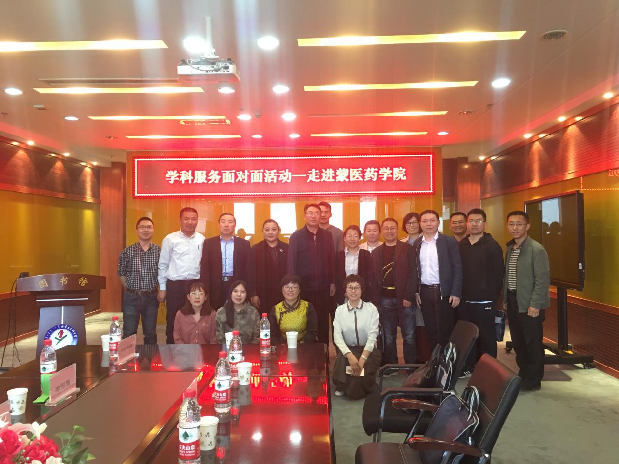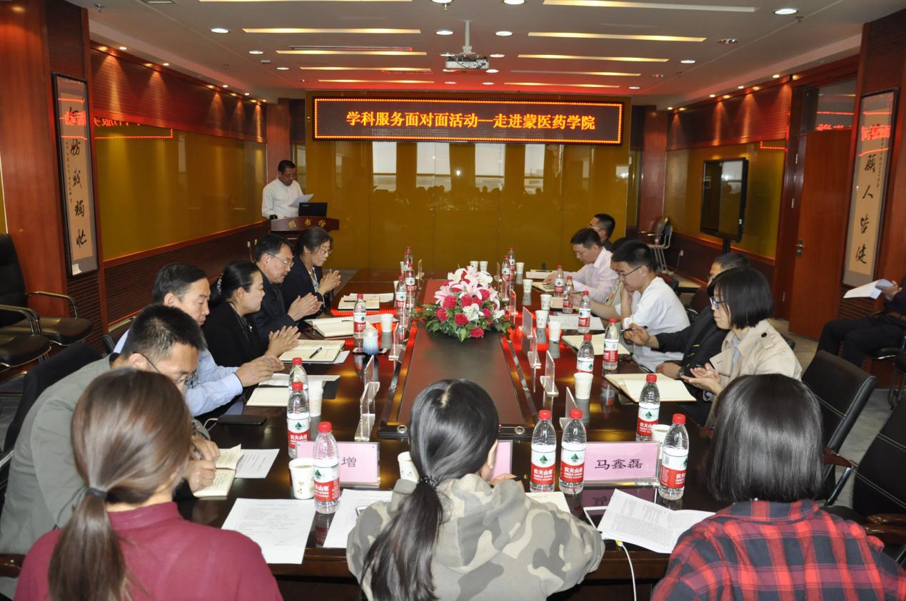 图书馆于5月9日下午,三楼会议室举办读书月系列活动之《学科服务面对面——走进蒙医药学院》。会议特邀蒙医药学院松林副院长、各教研室主任、学科服务教师顾问、研究生参加,图书馆党总支副书记、副馆长、各部室主任及全体学科馆员参加本次会议,传统医学文献信息部主任浩必斯嘎拉图同志主持会议。