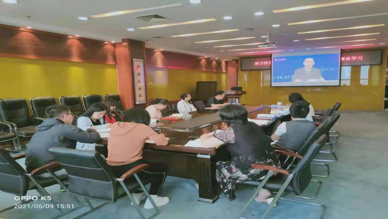 按照学校党委党史学习教育领导小组要求,图书馆党总支认真组织收看2021年“双百”活动中央和国家机关专场报告会网络直播。通过图书馆党总支理论学习中心组(扩大)学习、图书馆党总支第一党支部全体党员集体学习、图书馆党总支第二党支部全体党员集体学习等多种方式,分别在图书馆三楼会议室,组织收看《坚定不移坚持党对全面依法治国的领导》为题目的视频直播。图书馆领导班子、全体党员干部共30余人观看直播。