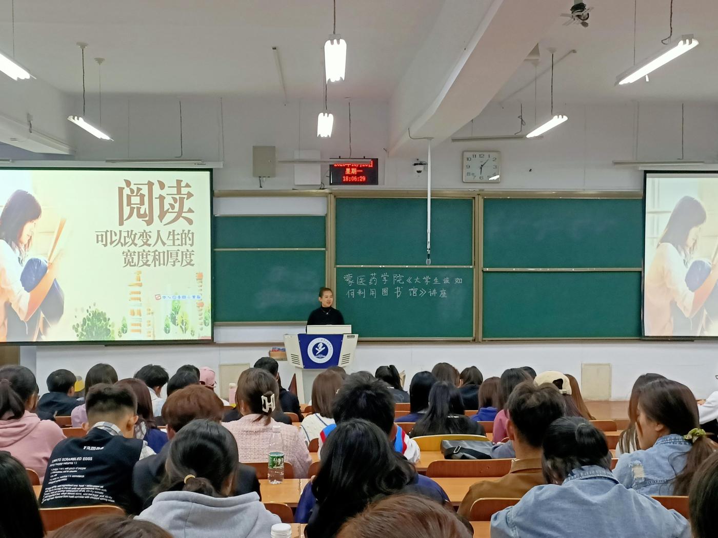 金秋十月是个硕果累累的季节,在这个秋风送爽,枫叶金黄的美好时节,图书馆宣讲团在蒙医药学院开展《大学生该如何利用图书馆》主题宣传活动。