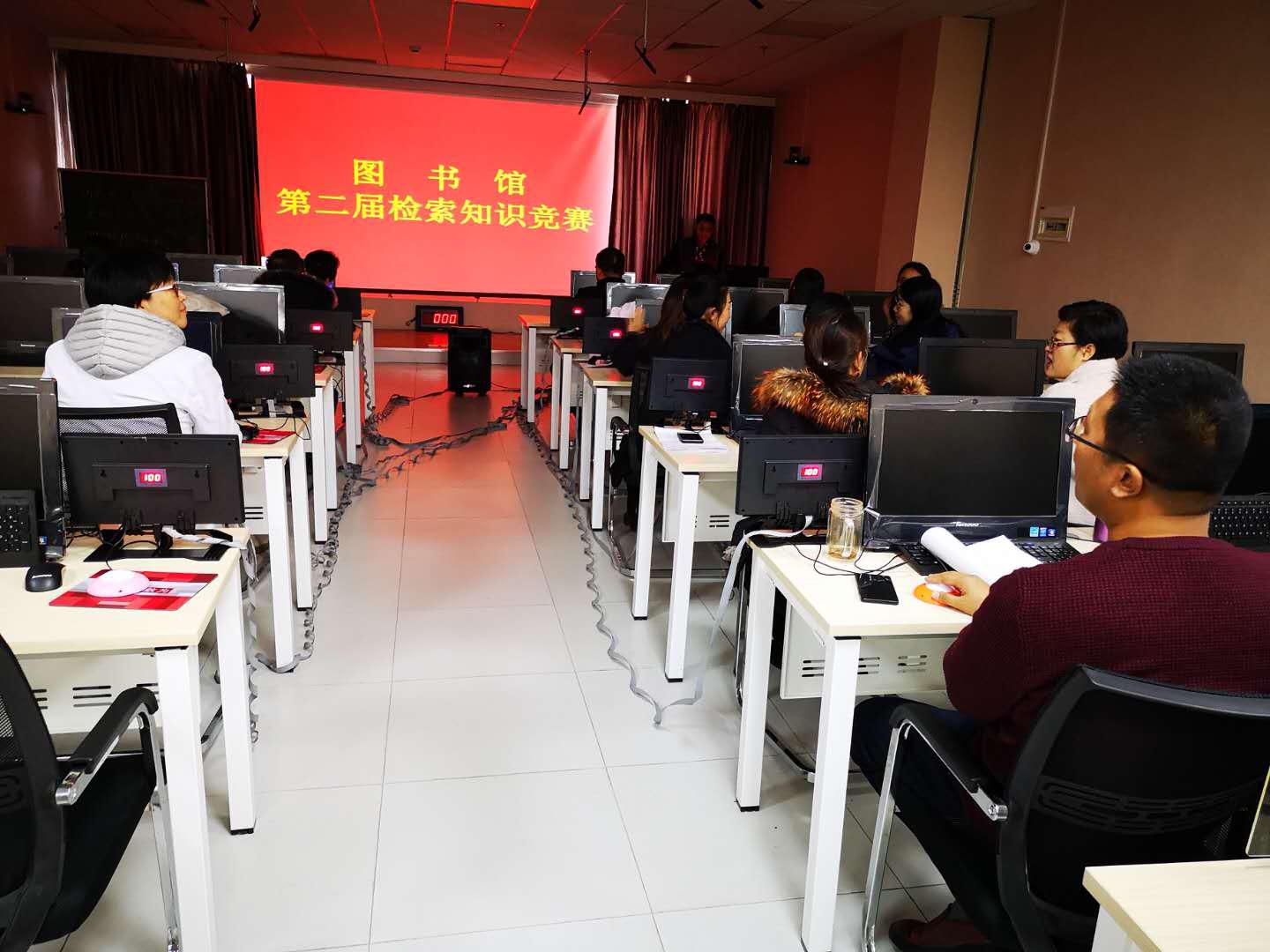 11月30日下午2:30,图书馆信息检索知识竞赛在金山校区图书馆二楼多媒体教室举行,本次竞赛由图书馆副馆长王焕芸、副馆长程鸿、教师代表杜茸玛、肖志彬担任评委,信息咨询部白玉晟主任主持,图书馆各部室组成七支队伍参加比赛,每个部室由三名代表参赛。