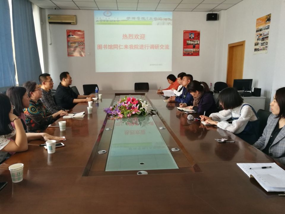 2018年4月18日下午3点,图书馆文献资源建设部皇甫军主任等一行七人到护理学院进行“读者服务走访调研”,在内蒙古医科大学护理学院六楼会议室,与护理学院仁贵强、李翀、周妹等任课教师们面对面座谈交流。