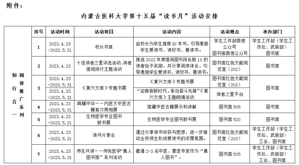 附件:内蒙古医科大学第十五届“读书月”活动安排